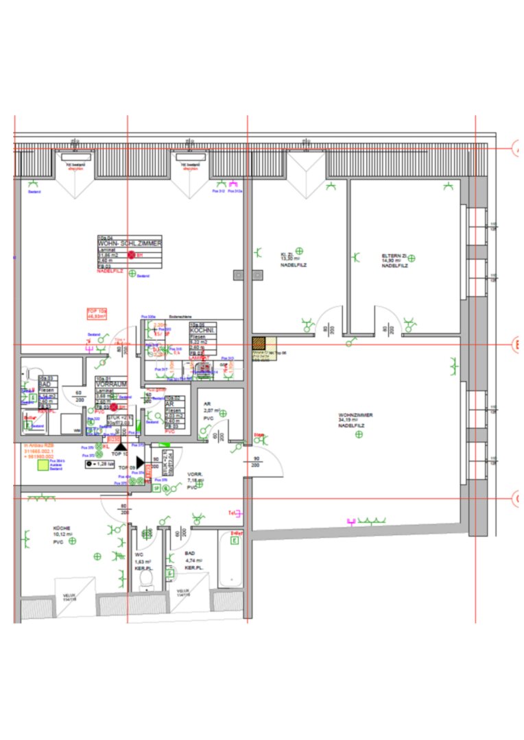 Raumaufteilung: Vorraum, Wohnzimmer, Küche, 2 Schlafzimmer, Badezimmer, WC, Abstellraum