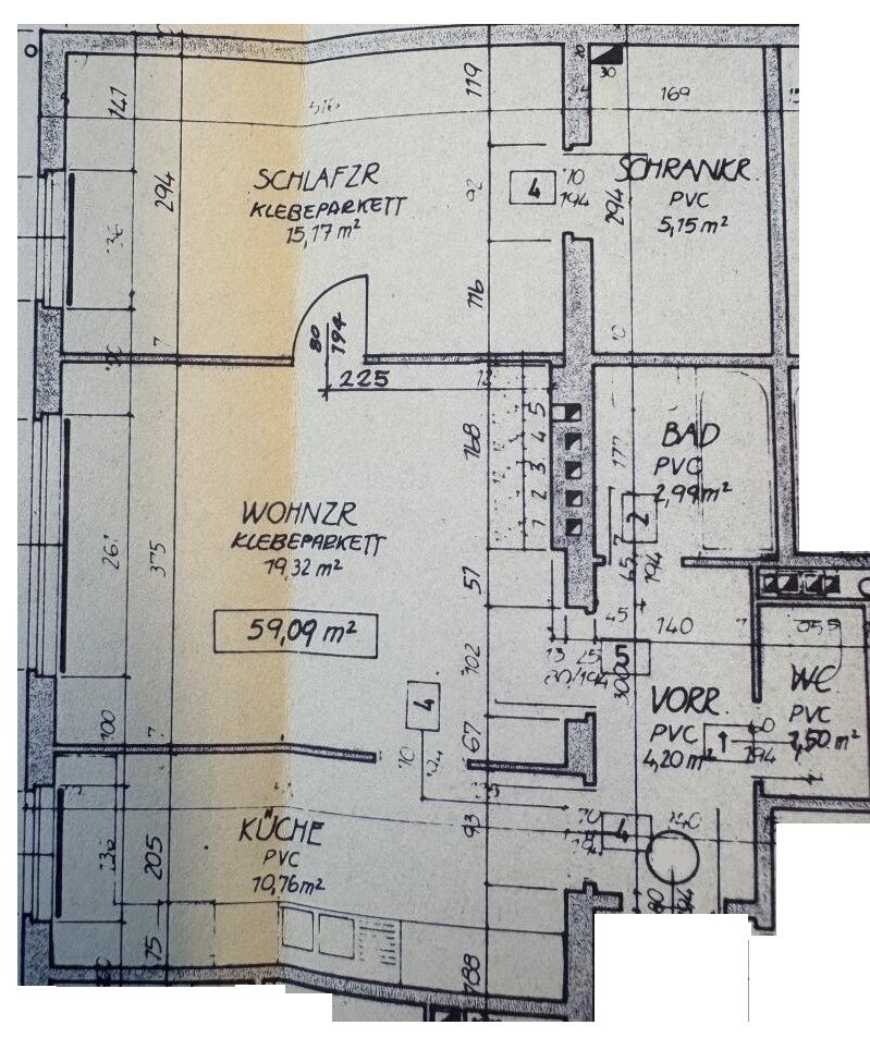Im fünften Liftstock gelegen bietet sich Ihnen eine helle Zweizimmerwohnung zum Kauf an. Das sind die facts: Westseitig ein Wohnzimmer und angrenzend ein Schlafzimmer mit Schrankraum, ein Bad mit Wanne, eine Toiliette, sowie eine separate Küche mit kleinem Essbereich. Ein geräumiges, augenscheinlich trockenes Kellerabteil ist ebenso vorhanden.