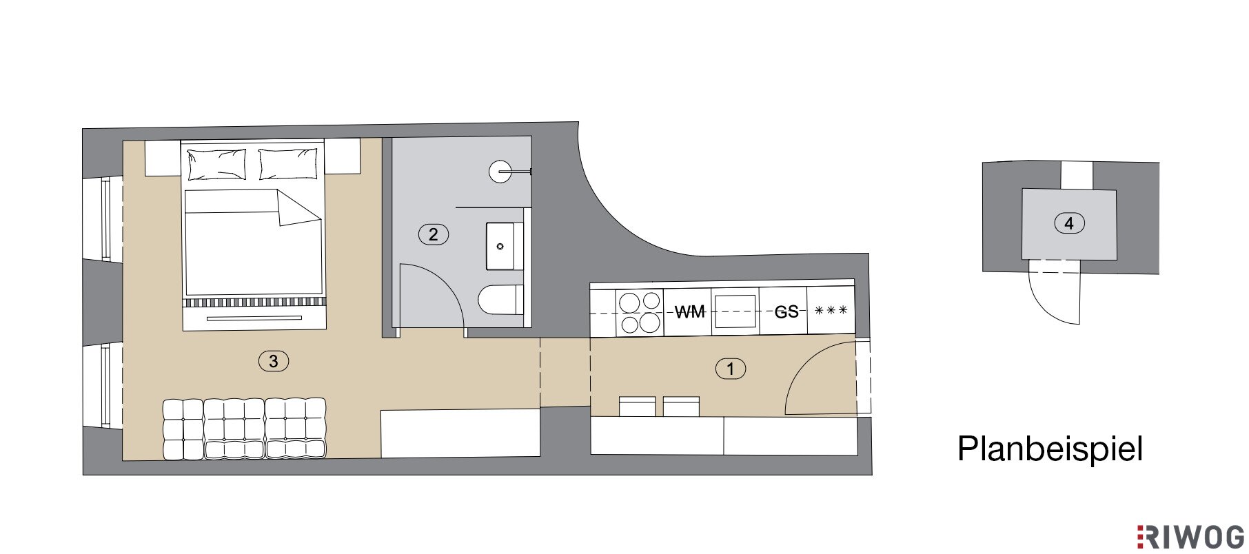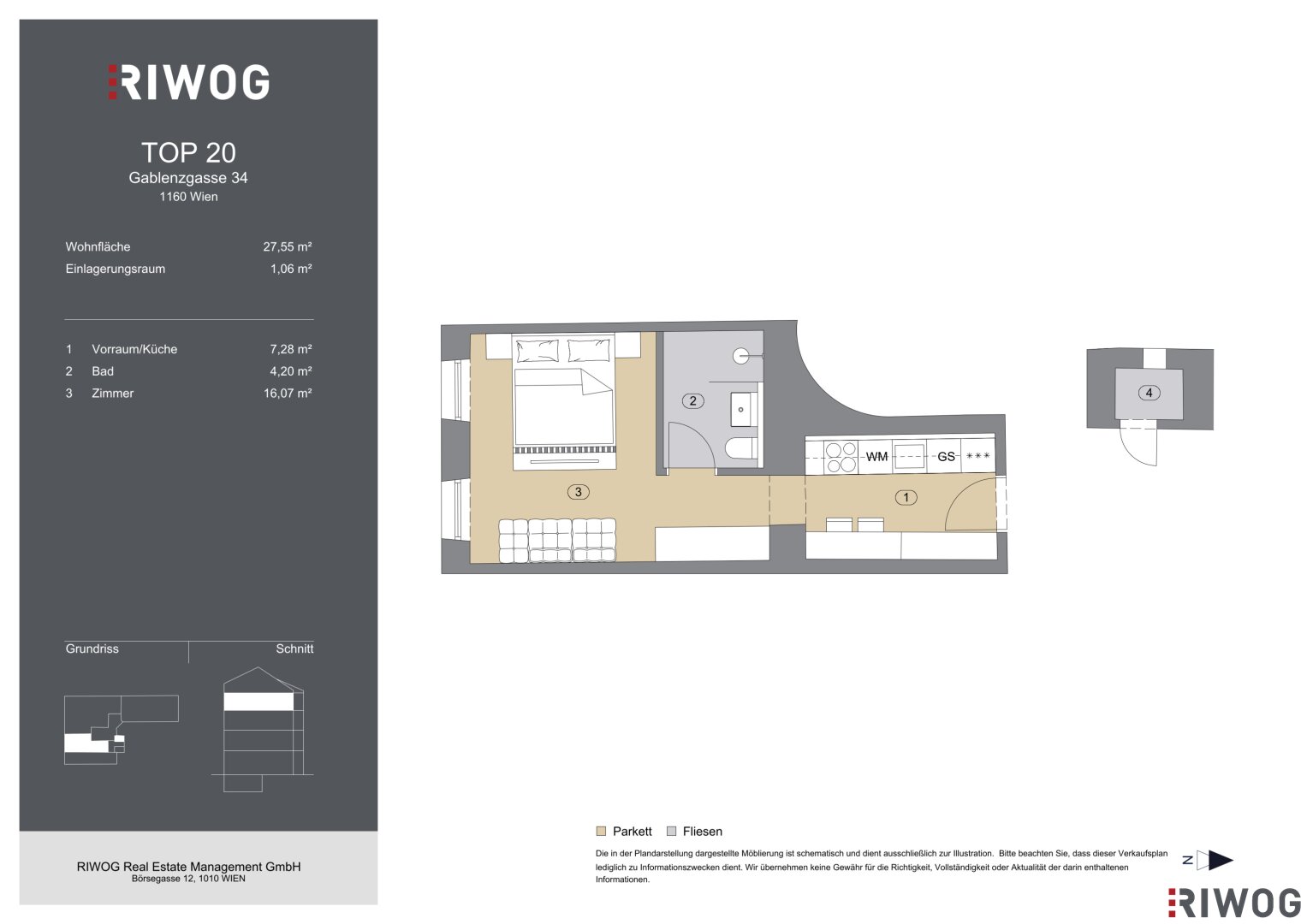 – 27,55 m2 Wohnfläche + 1,06 m2 Einlagerungsraum
