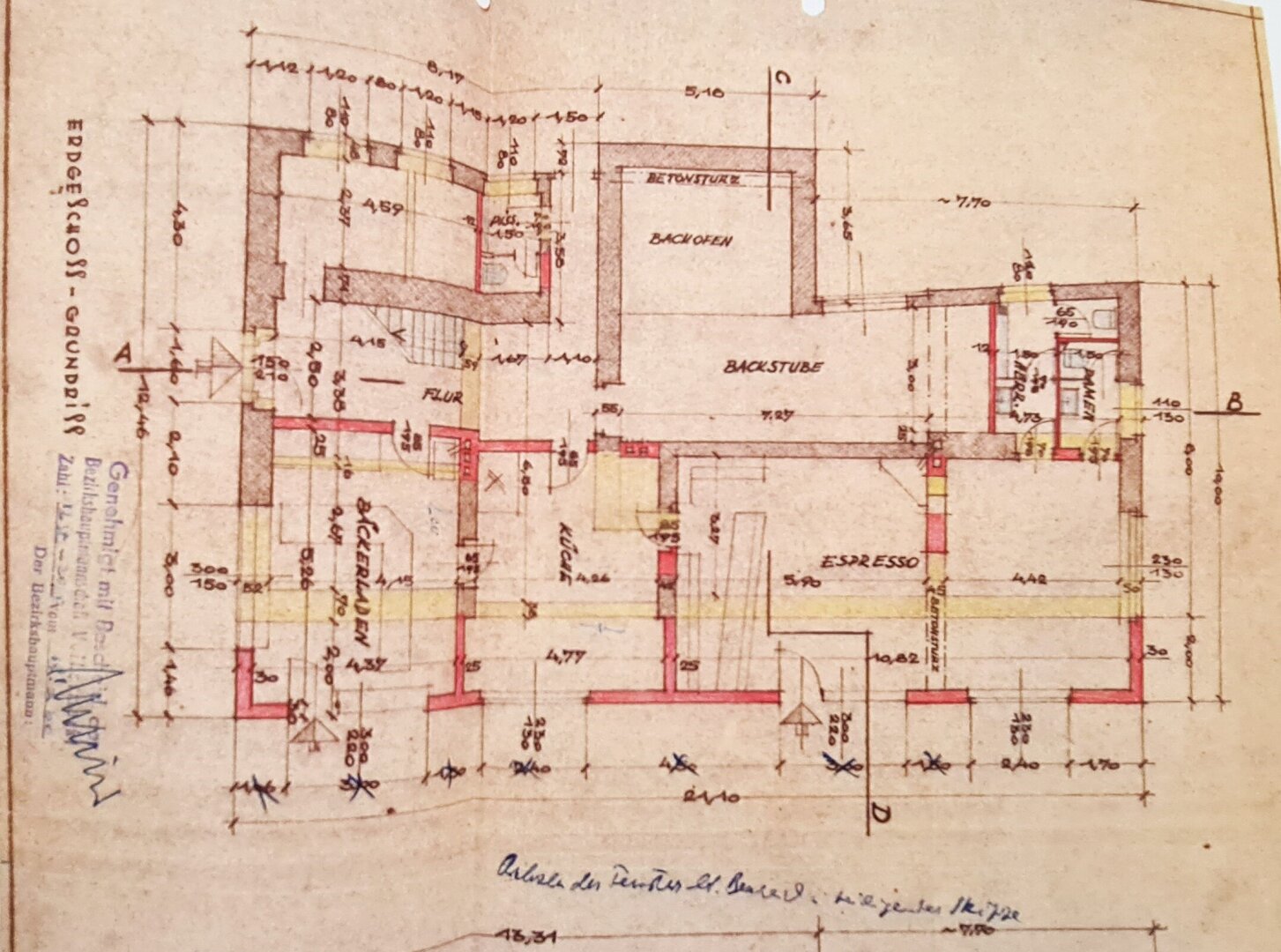Gleich vis-à-vis vom Stift Eberndorf mit direktem Blick darauf befindet sich unser Stadthaus. Die spätgotische Stiftskirche und die barocke Stiftsanlage prägen noch heute das Ortsbild. Unsere Planunterlagen zur Liegenschaft – einer ehem. Bäckerei – reichen bis 1932 und 1960 zurück, ein Teil mit Gewölbedecke wird wohl noch älter sein.