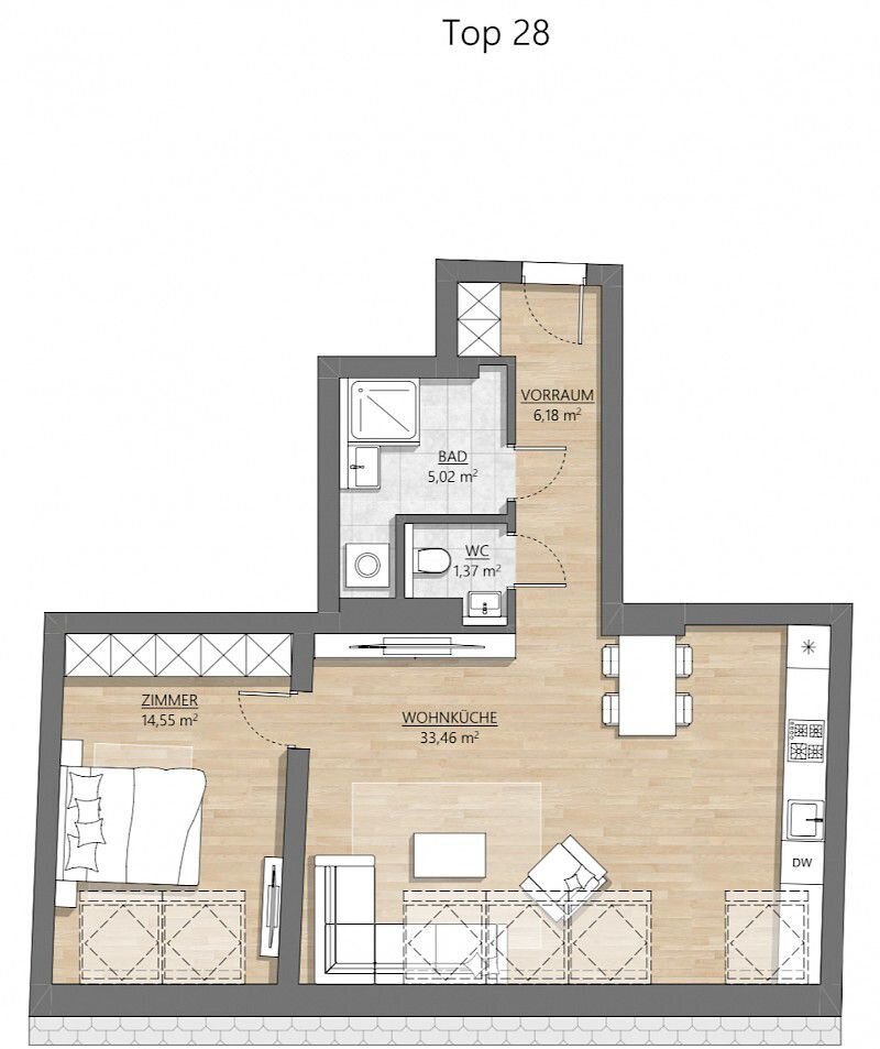Gesamtfläche: 45 m2