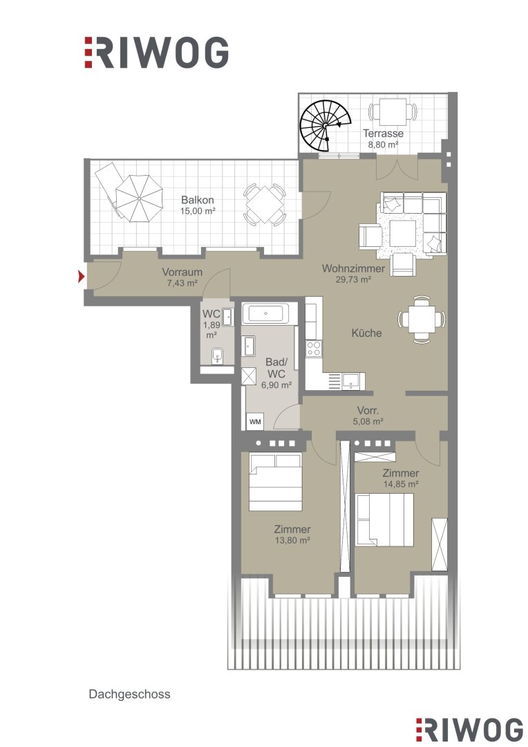 Nähe Tiergarten Schönbrunn – ruhige Sonnenoase mit 49m² Dachterrasse – weitere Terrasse und Balkon – großzügige moderne Raumaufteilung