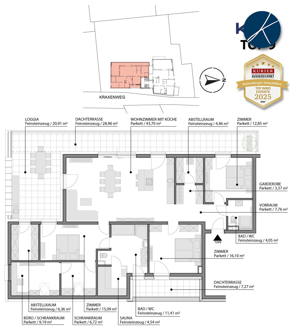 Das exquisite Neubauprojekt befindet sich am Kraxenweg in einer der beliebtesten Wohnlagen, dem Kremser Steindl. Es umfasst 10 exklusive Wohneinheiten, die mit modernen Annehmlichkeiten und durchdachten Grundrissen überzeugen. Die Wohnungen variieren in der Größe von 60 m² bis 160 m² und
