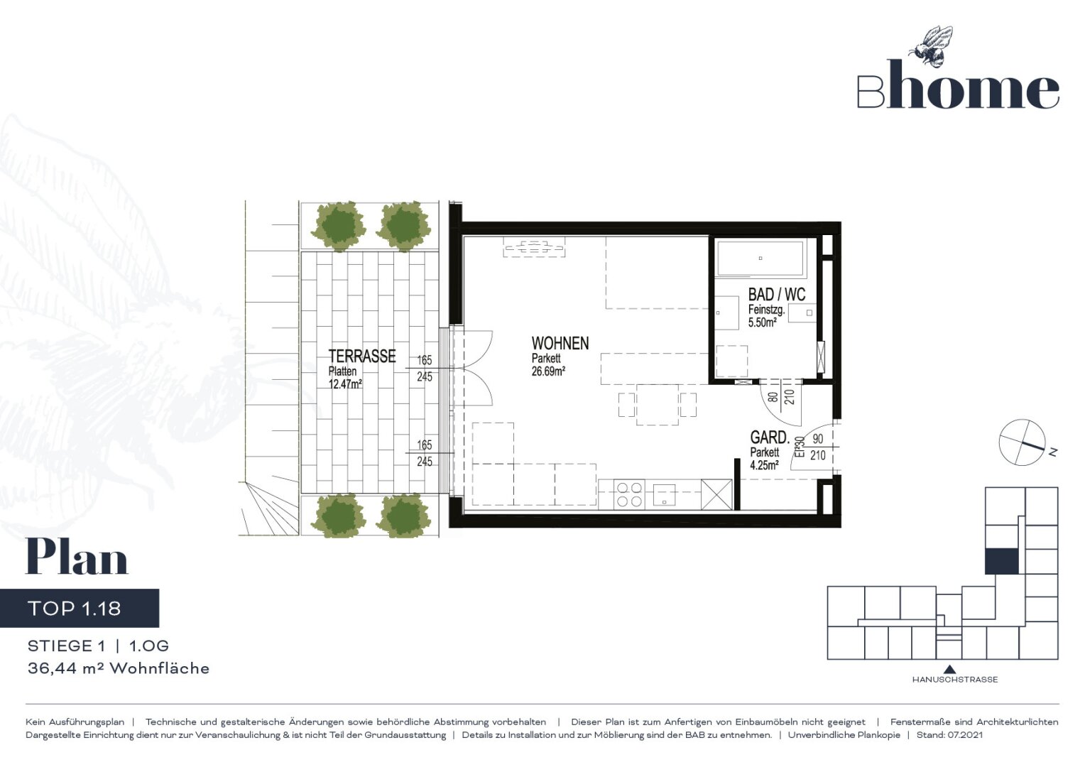 Diese optimal aufgeteilte, ca. 36,44m² große Wohnung befindet sich im 1. Obergeschoß und ist sowohl barrierefrei mittels Lift als auch über das Stiegenhaus erreichbar.