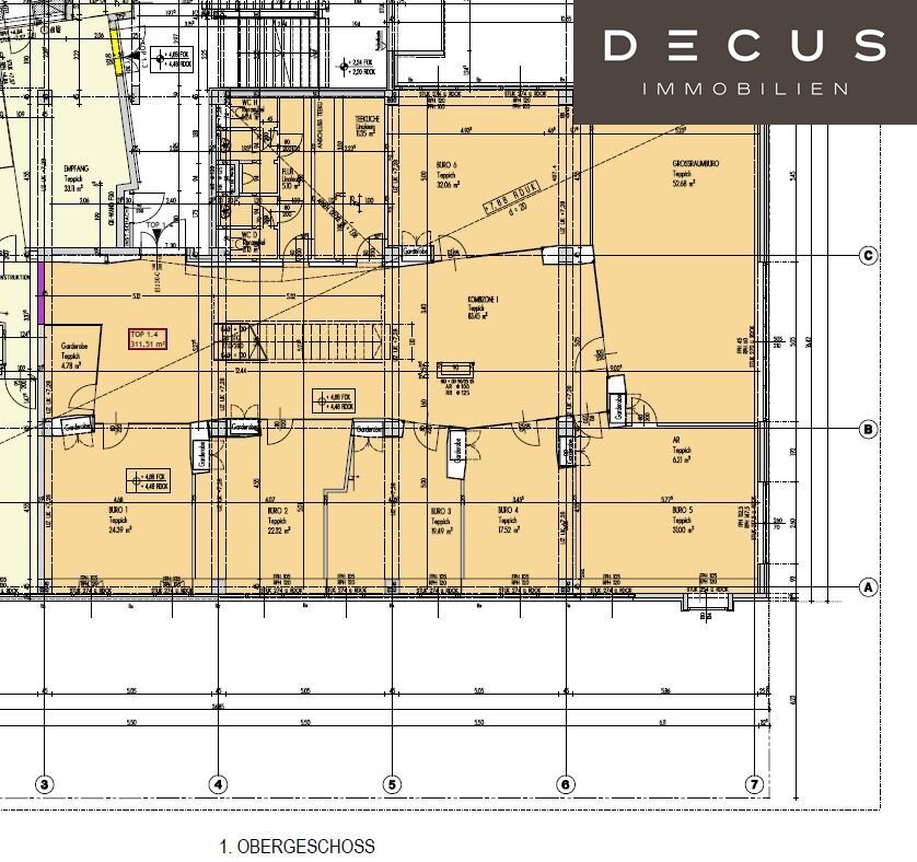 Zur Vermietung gelangen moderne Büroeinheiten, mit einer Nutzfläche von ca. 1.400 m² gesamt (teilbar).