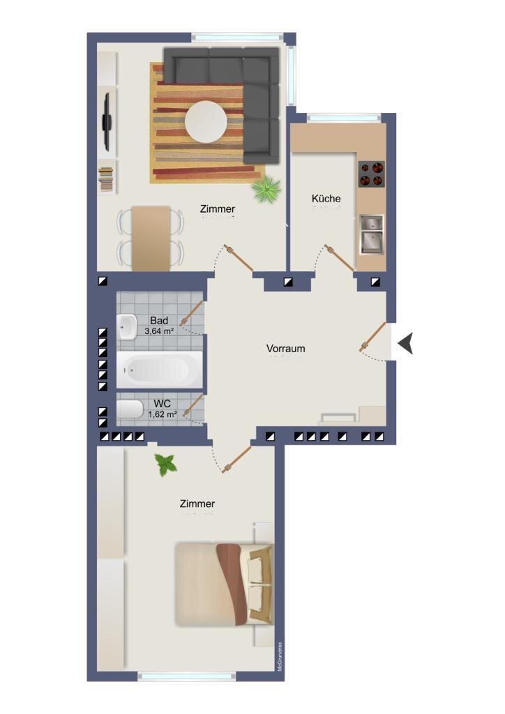 Sanierte 2-Zimmerwohnung mit ca. 62m² in Top...