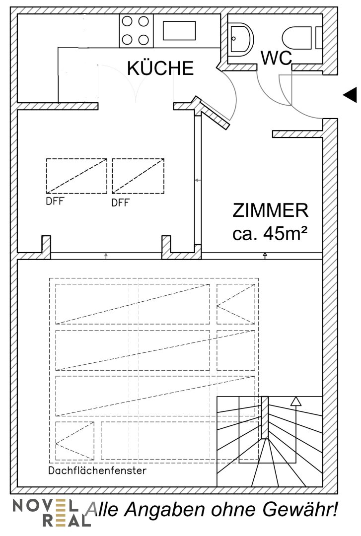 Die von einem Architekten gestaltete, außergewöhnliche und ruhige Maisonette-Wohnung befindet sich im ausgebauten Dachgeschoss eines repräsentativen Palais (mit Lift) in unmittelbarer Nähe zur U2 Rathaus, der Universität und dem Burgtheater und bietet eine Wohnfläche von ca. 89 m² plus 6 m² Terrasse angrenzend an das Schlafzimmer, sowie eine 22 m² begrünte Dachterrasse