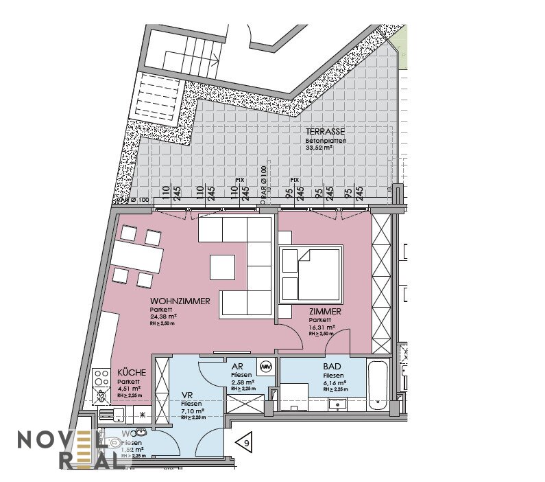 Zum Verkauf steht eine vollmöblierte, ca. 63 m2 große Luxuswohnung in Bestlage des 6. Bezirks. Die Wohnung befindet sich im 1. Obergeschoß eines modernen Neubaus nahe der Mariahilfer Straße und besteht aus einem großzügigen Wohn-/Küchenbereich mit exklusiver italienischer Designerausstattung sowie einem Schlafzimmer mit elegantem Badezimmer en suite. Eine große Innenhofterrasse mit über 33