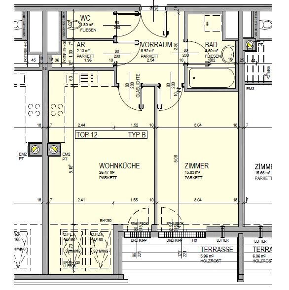 Die Wohnung bietet modernen Wohnkomfort mit einer Wohnfläche von 58 m² und einer Terrasse mit zusätzlichen 6 m².