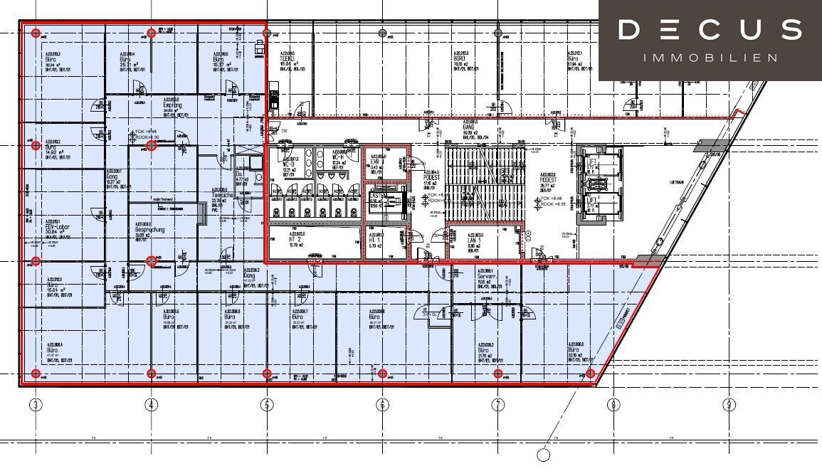 Das GATE (Flachbau) verfügt über eine gesamte Bürofläche von ca. 15.000 m² und wurde mit 7 Geschoßen errichtet.