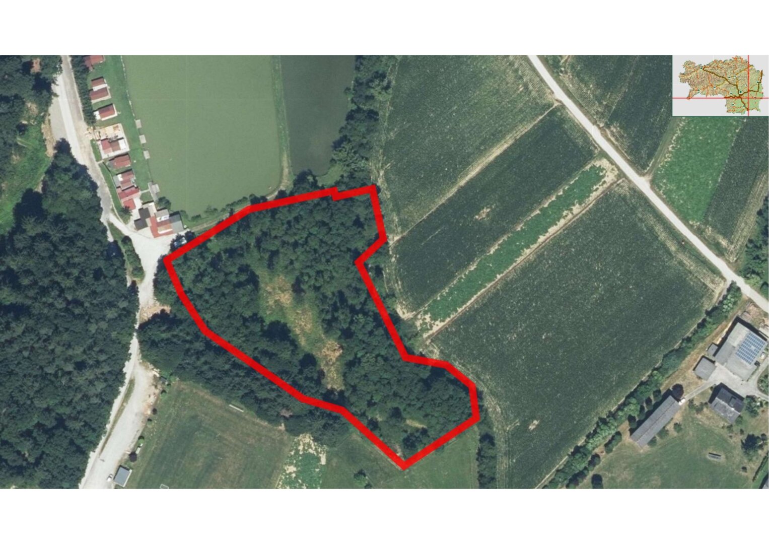 Zum Verkauf steht ein großes 10.322m² Grundstück mit der Sondernutzung im Freiland – Die Widmung wurde als Erholungszwecke und Fischteich bewilligt.