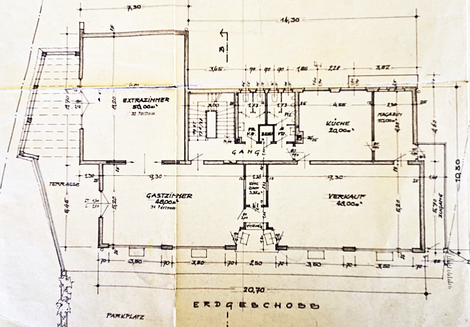 Das Haus wurde 1967 in Massivbauweise erbaut und jahrzehntelang als Gaststätte genutzt.