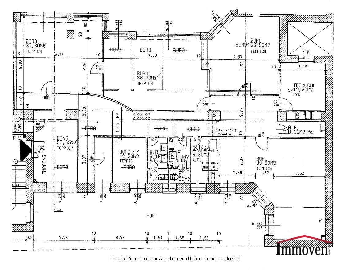 Das Büro befindet sich im 1. Obergeschoss (Lift vorhanden) und bietet eine Nutzfläche von ca. 250 m².