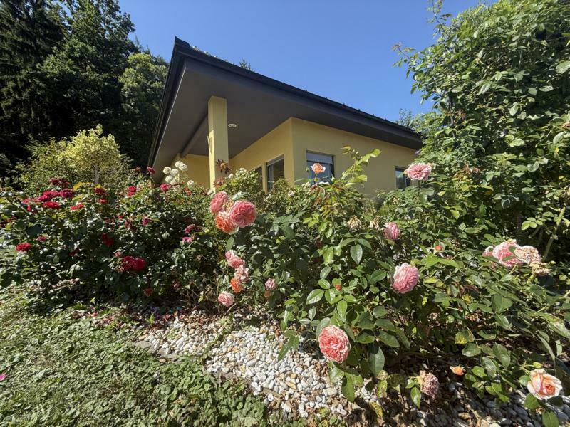 Das großzügige Grundstück von 782 m² ist liebevoll gestaltet und besticht durch eine charmante Gartenanlage mit Rosenbeet, edlen Gräsern und gepflegten Sträuchern – ein Ort der Ruhe und Inspiration.