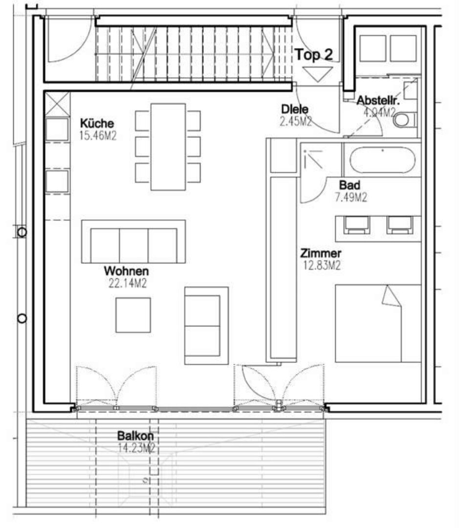 In unmittelbarer Nähe der Buzihütte bzw. des Berchtoldshof befindet sich diese kleine, mit 6 Einheiten ausgestattete, modernste Wohnanlage. Die Wohnung ist südseitig ausgerichtet und somit sehr hell. Die moderne Architektur des Architekten Obermoser hat hier ein offenes Badezimmer mit Direktanbindung Schlafzimmer geschaffen. Der großzügige südseitige Wohn- u. Essbereich mit direktem