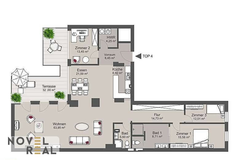 Der Zugang zu den Wohnungsgeschoßen erfolgt über eine großzügig gestaltete Eingangshalle.