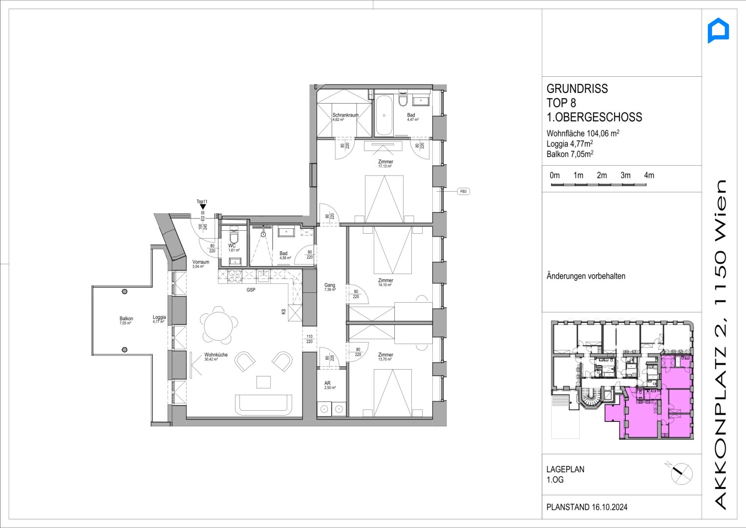 ERSTBEZUG, RUHIG, JETZT einziehen! Kernsanierter Albau mit modernster Ausstattung 106 m² Wohnfläche, TOP16 / 4 Zimmer plus Nebenräume 13,4m² SW-Balkon-Loggia