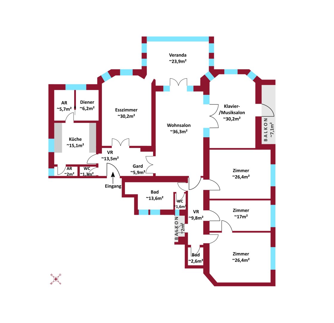 Diese einzigartige Altbauwohnung mit ca. 261 m² Wohnfläche und ca. 10 m² Außenfläche verbindet den prachtvollen Charme der Gründerzeit mit modernem Wohnkomfort. Bis zu 3,75 m hohe Decken, original erhaltenes Echtholz-Parkett, Doppel-Flügeltüren, Kastenfenster sowie ein stilvoller Kamin und Kachelofen unterstreichen das besondere Ambiente.