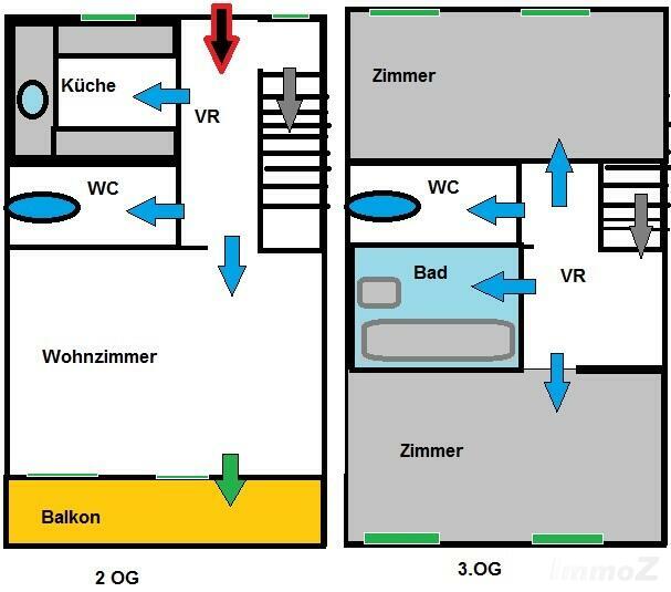 Im 3.OG befinden sich 2 Zimmer, Badezimmer mit Wanne, extra WC. Derzeit befindet sich Sanierung der Fassade und der Fenstertausch im ganzen Gebäude im Endstadium. Ein Büroaufwand in der Höhe von 1x Euro