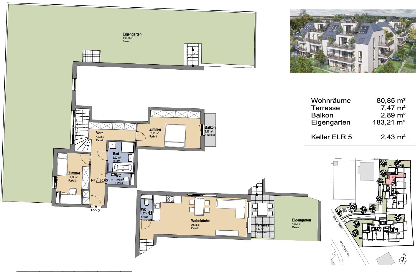 In der Schwarzelackenau beim Marchfeldkanal , in naturnaher Umgebung des 21. Bezirks, entsteht ein Neubauprojekt mit insgesamt 28 freifinanzierten Eigentumswohnungen. Das Projekt umfasst insgesamt zwei Stiegen, jeweils mit 2 bis 4 Zimmer Wohnungen und Wohnflächen zwischen ca. 37 m² und 105 m² – Alle Einheiten verfügen über Freiflächen in Form von Balkon, Terrasse oder einem Eigengarten.