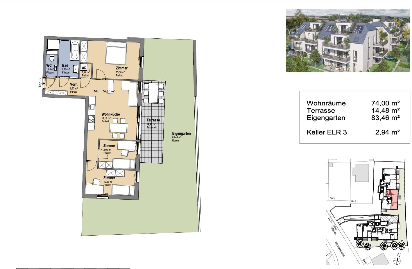 In der Schwarzelackenau beim Marchfeldkanal , in naturnaher Umgebung des 21. Bezirks, entsteht ein Neubauprojekt mit insgesamt 28 freifinanzierten Eigentumswohnungen. Das Projekt umfasst insgesamt zwei Stiegen, jeweils mit 2 bis 4 Zimmer Wohnungen und Wohnflächen zwischen ca. 37 m² und 105 m² – Alle Einheiten verfügen über Freiflächen in Form von Balkon, Terrasse oder einem Eigengarten.