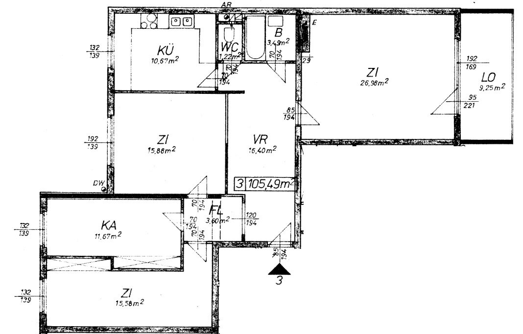 Diese großzügige Wohnung liegt im 1. Lifstock einer sanierten und sehr gepflegten Wohnhausanlage mit 3 Baukörpern. Sie besticht durch die ruhige Lage und den Grünblick. Mit einem Kaufpreis von 498.000,00 € bietet diese renovierungsbedürftige Immobilie auf 105,5 m² Wohnfläche plus großer Loggia viel Wohnraum.