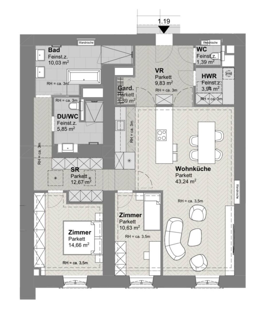 Dieses exklusive Apartment im 2. Stock des historischen Backsteingebäudes „Das Artmann“ verbindet die einzigartige Ausstrahlung eines denkmalgeschützten Hauses mit modernstem Wohnkomfort. Auf ca. 114 m² eröffnet sich ein Zuhause, das gleichermaßen stilvoll, funktional und außergewöhnlich durchdacht ist.