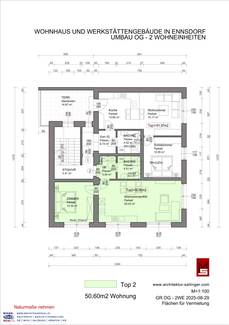 Diese 2-Zimmer Wohnung im Obergeschoss eines Einfamilienhauses in Ennsdorf bietet auf rund 50,6 m² ein modernes Wohngefühl – Erstbezug nach Renovierung!