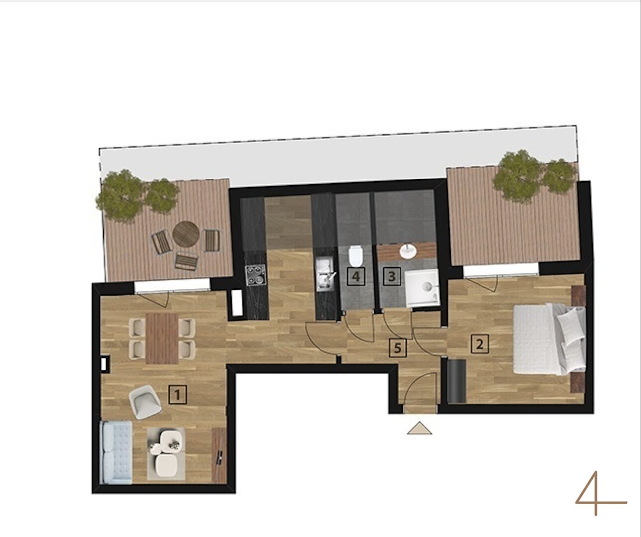 Diese charmante 2-Zimmer-Dachgeschosswohnung mit ca. 57,34m2 und 2 Terrassen mit insgesamt 20m² gliedert sich in: