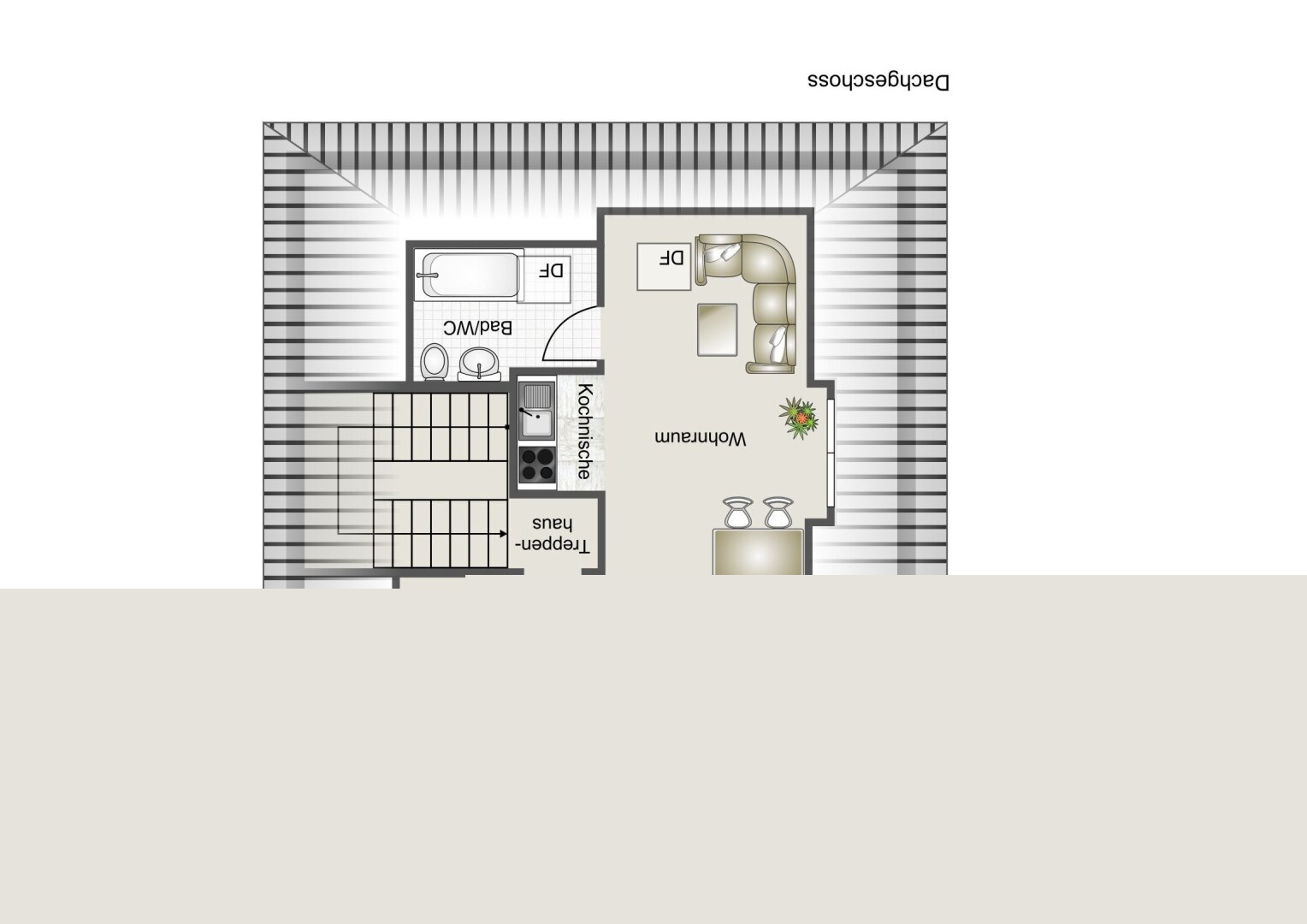 Untergeschoss: Technikraum, Wirtschaftsraum, Abstellbereich sowie eine Wohnung mit ca. 36 m² Wohnfläche