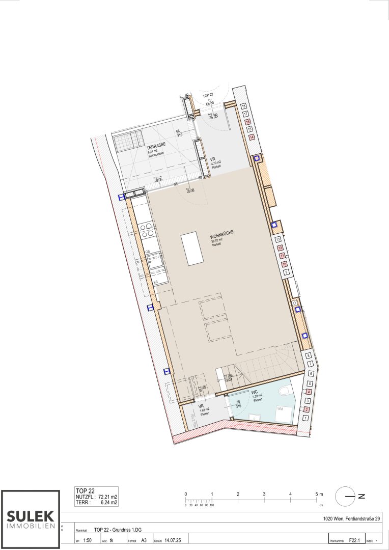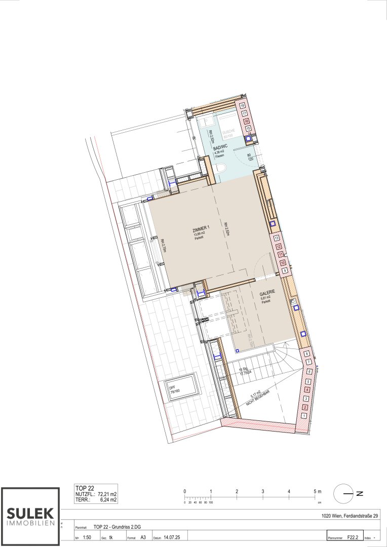 Zur Vermietung gelangt ein aktuell in Fertigstellung befindlicher Dachgeschoßausbau in der Ferdinandstraße 29, 1020 Wien.