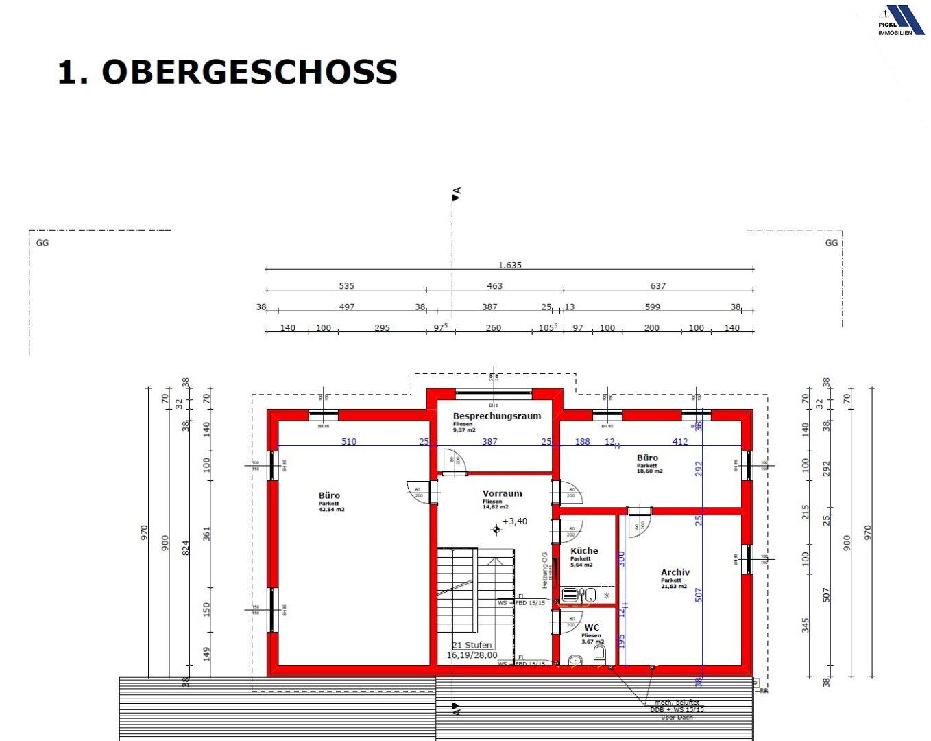 Zur Vermietung gelangt eine attraktive Bürofläche mit ca. 100 m² im 1. Obergeschoss eines gepflegten Geschäftsgebäudes in der Albert-Schweizer-Straße 8, Marchtrenk.