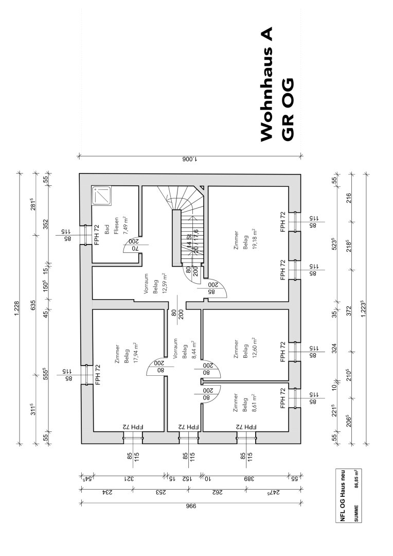 * Im EG: Windfang, Vorraum, Küche, 1 Zimmer, Speis, Abstellraum, Aufgang