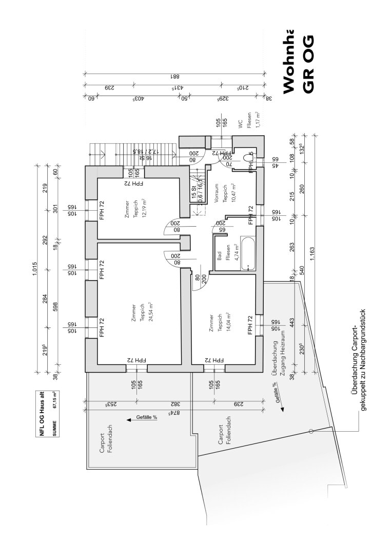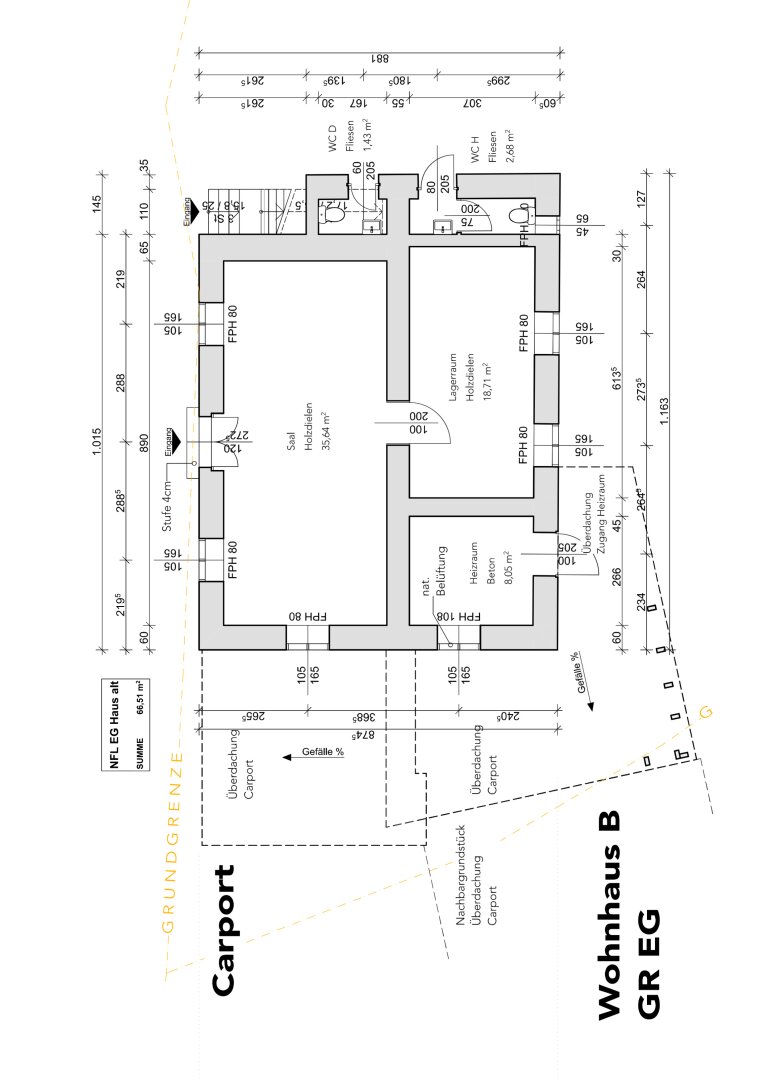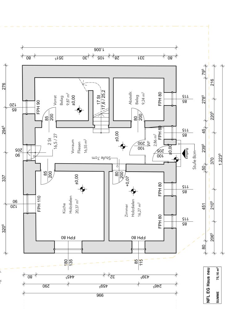 * Im EG: Windfang, Vorraum, Küche, 1 Zimmer, Speis, Abstellraum, Aufgang