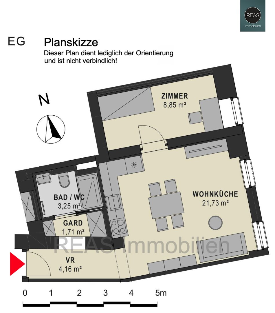 * 1 Wohn-Esszimmer mit Küchenanschluss