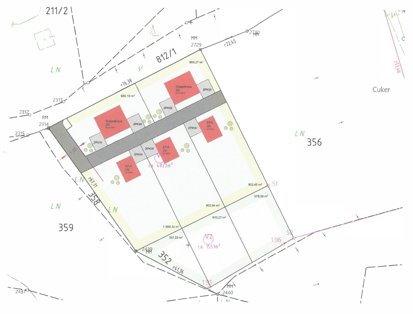 Das Gesamtgrundstück liegt in der Weststeiermark, ist sonnig und leicht geneigt und wurde durch einen Bebauungsvorschlag in 5 Parzellen geteilt, es befindet sich lt. FLWI im ausgewiesen Bereich WA-13 „Kumpusch-St.Josef“ mit einer Dichte von 0,2-0,5. Im nördlichen Teil des Grundstückes befinden sich zwei Parzellen für die die Errichtung von 2