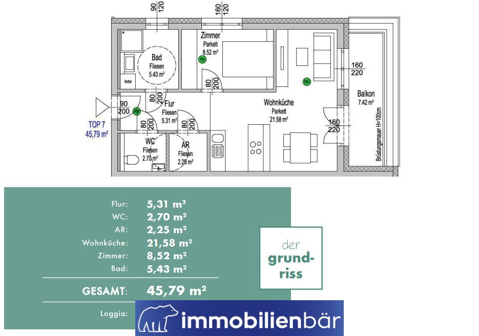 Die Wohnung verfügt über eine großzügige Wohnküche mit direktem Zugang zur Loggia, ein ruhiges