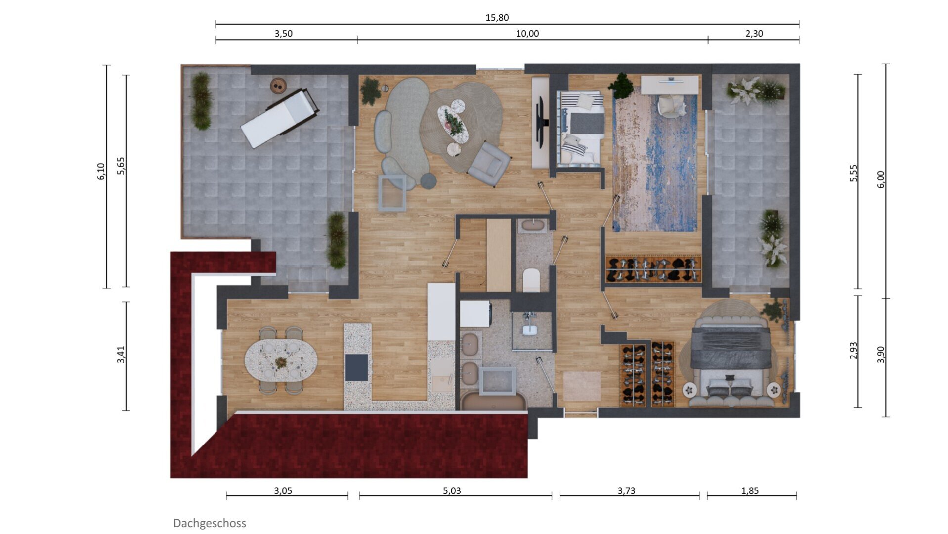 Diese neuwertige Dachgeschosswohnung bietet nicht nur eine beeindruckende Wohnfläche von 97,03 m², sondern auch ein durchdachtes Raumkonzept, das modernes Wohnen mit einem Hauch von Luxus