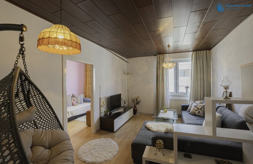 Die zum Verkauf stehende Eigentumswohnung befindet sich in einem gepflegten Haus in der Herzgasse im 10. Wiener Gemeindebezirk (Favoriten). Die Wohnung liegt im 4. Obergeschoss (ohne Lift) und bietet eine Wohnfläche von ca. 72,67 m². Sie verfügt über drei gut geschnittene Zimmer, die vielseitig nutzbar sind – ob als