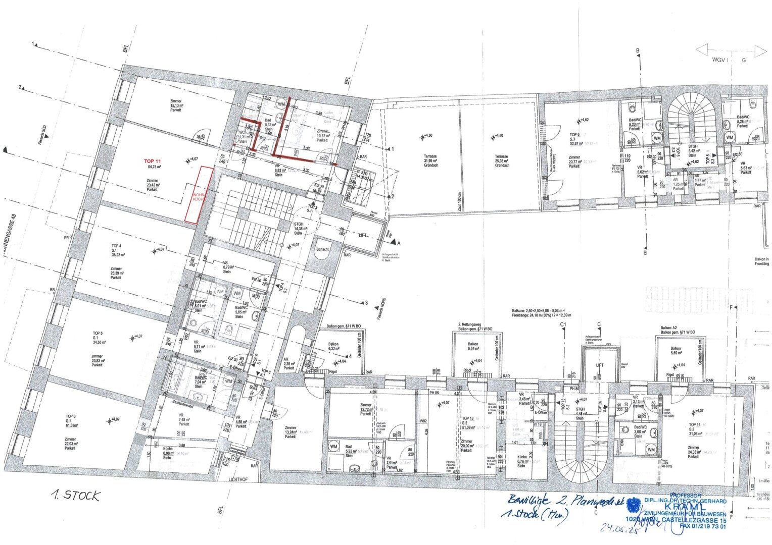 Diese Wohnung hat 64,75 m² und besteht aus einer Wohnküche mit 23,42 m², 2