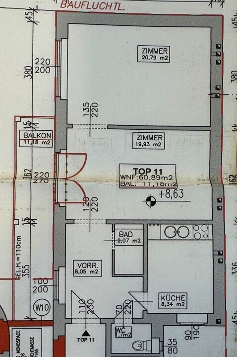 Die 2-Zimmer-Wohnung erstreckt sich auf ca. 61m²