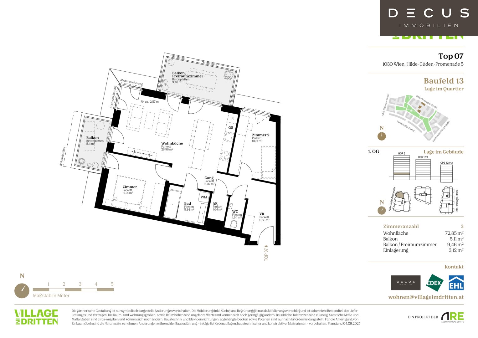DREI ZIMMER + ZWEI BALKONE + VILLAGE IM DRITTEN + BAUFELD 13 + ERSTBEZUG + EIGENTUMSWOHNUNGEN +