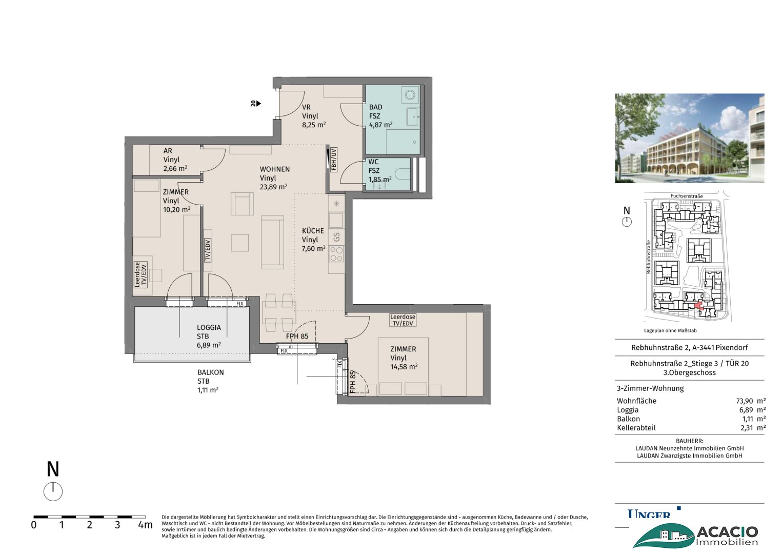 Diese topmoderne Mietwohnung im 3. Obergeschoß mit ca. 73,90m² Wohnfläche verfügt über eine nach Süden ausgerichtete Loggia – genießen Sie hier den ganzen Tag die Sonne!