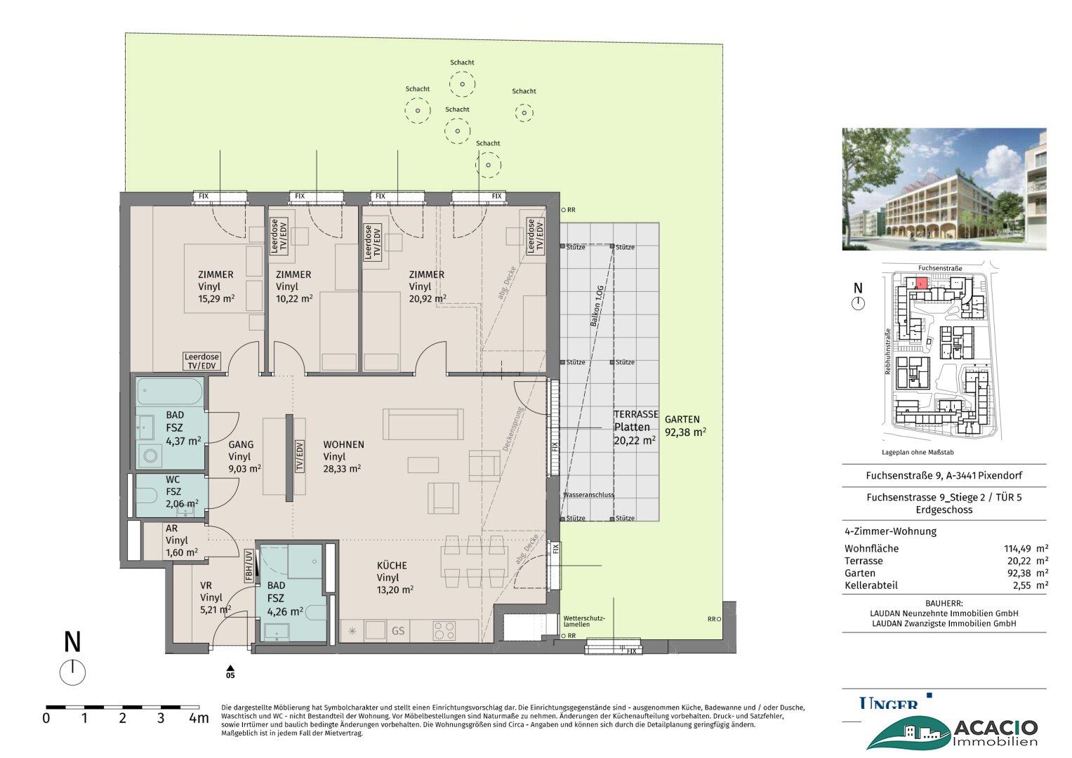 Diese topmoderne und großzügige 4-Zimmer-Gartenwohnung verfügt über ca. 114,49m² Wohnfläche und einem über 90 m² großen Eigengarten samt Terrasse.