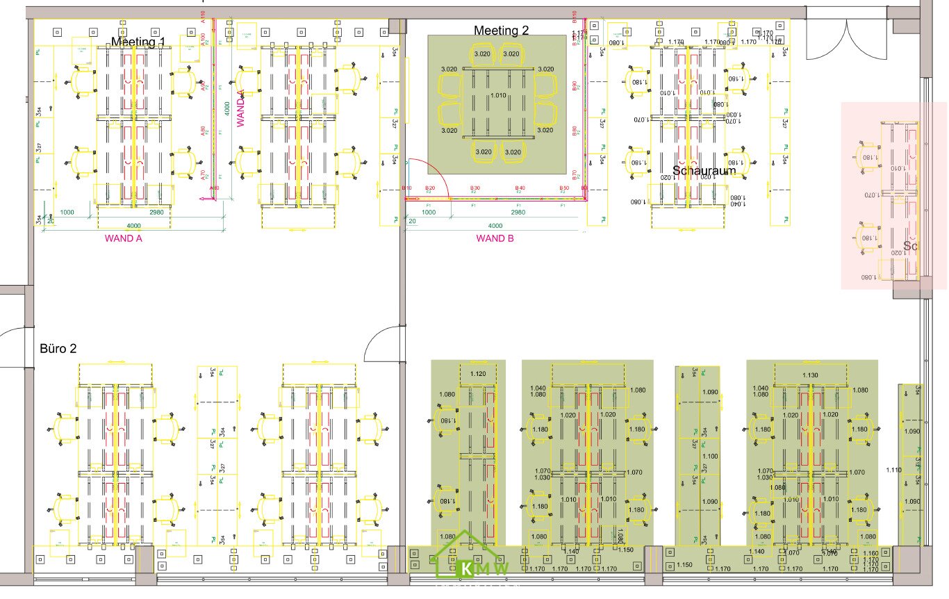 Die voll ausgestatteten Büroflächen teilen sich in 3 große Räume, extra Besprechungszimmer und einen
