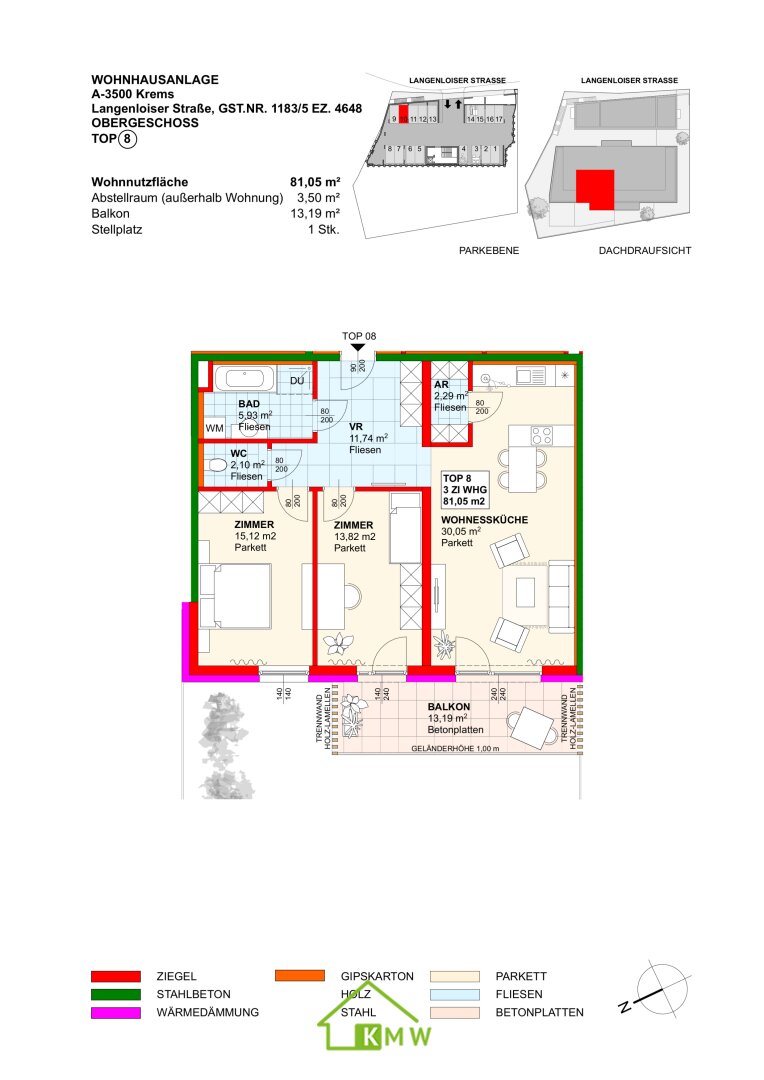 Die Wohnung bietet eine Wohnfläche von ca. 81,05m² und eine ca. 13,19m² Terrasse.