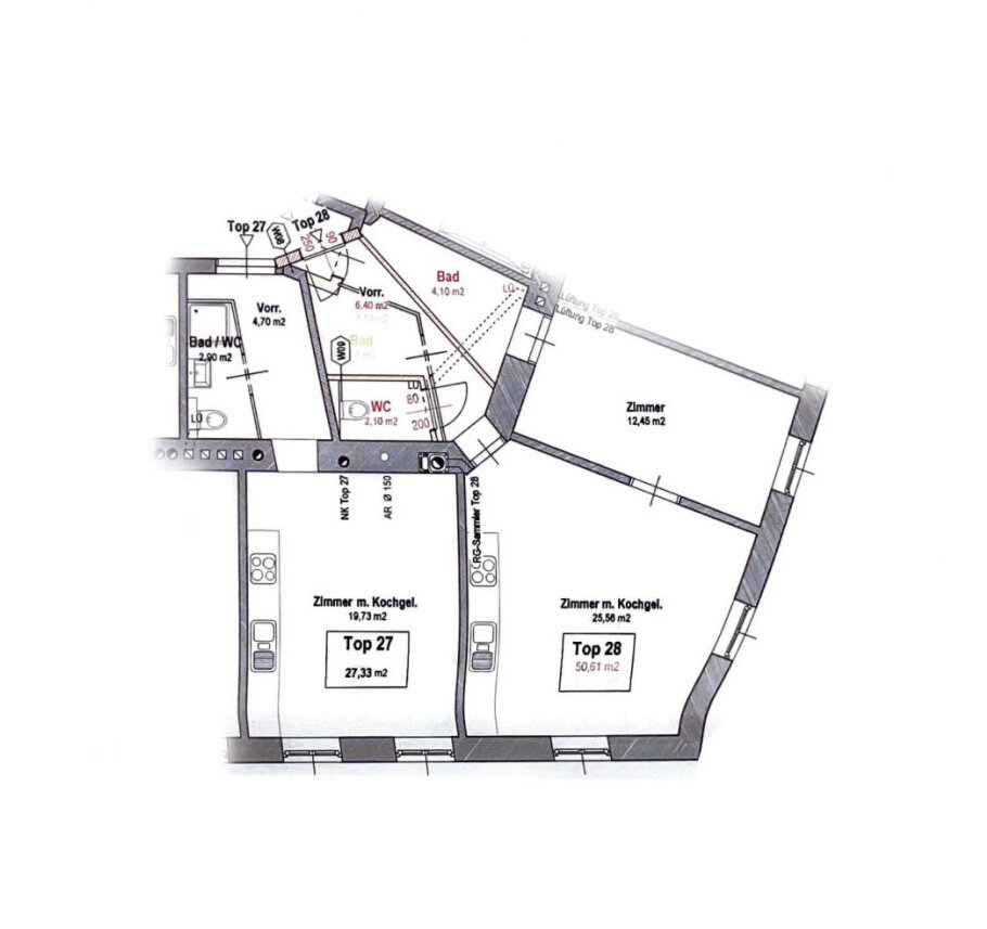 Verkauft werden zwei nebeneinanderliegende entkernte Eigentumswohnungen im Ausmaß von 78,14 m2 im 14. Wiener Gemeindebezirk in der Goldschlagstraße. Die Wohnungen befinden sich im 2. Stock mit Lift eines 1911 erbauten Altbauwohnhauses. Das Wohnhaus wurde 2012 vollständig vom Keller aufwärts revitalisiert. Im Zuge dessen wurde eine Energieeffiziente Hauszentralheizung mittels Luftwärmepumpe und eine Lüftungsanlage mit Wärmetauscher
