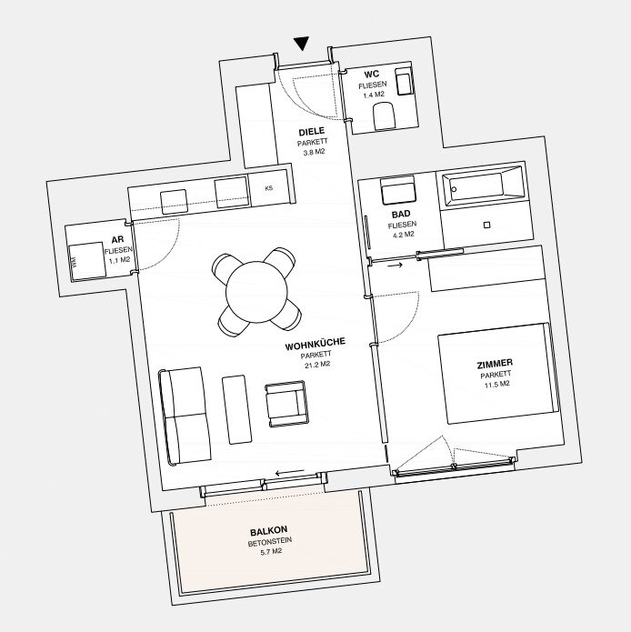 ++ Bei den hier dargestellten Fotos handelt es sich um ähnliche, bereits fertiggestellte Wohnungen des selben Projektentwicklers. Aktuelle Bilder des Projektes MOLLARD50 werden nächste Woche nachgereicht. Der dargestellte Plan/Grundriss ist der der tatsächlichen