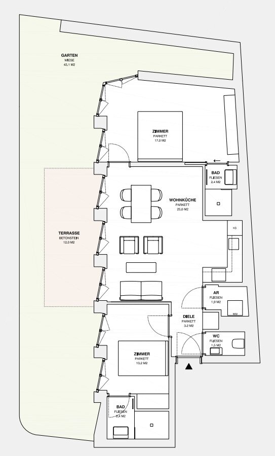 ++ Bei den hier dargestellten Fotos handelt es sich um ähnliche, bereits fertiggestellte Wohnungen des selben Projektentwicklers. Aktuelle Bilder des Projektes MOLLARD50 werden nächste Woche nachgereicht. Der dargestellte Plan/Grundriss ist der der tatsächlichen