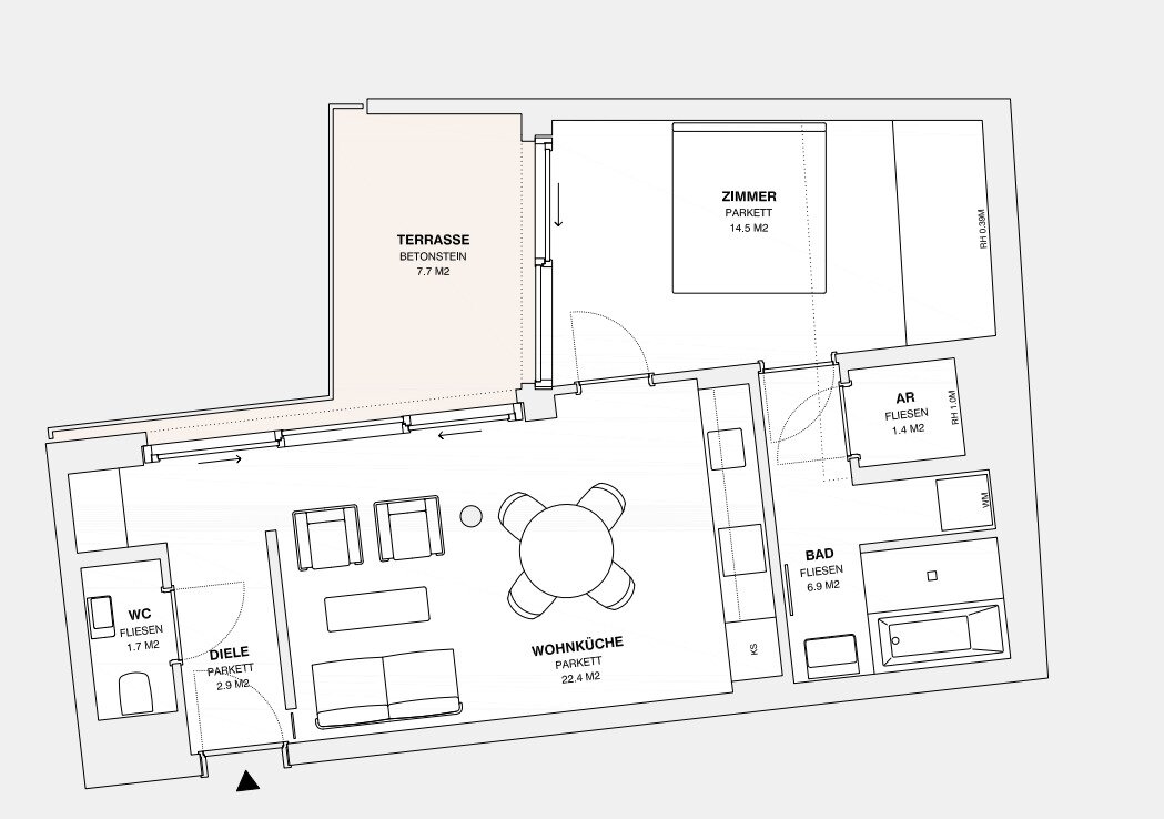 ++ Bei den hier dargestellten Fotos handelt es sich um ähnliche, bereits fertiggestellte Wohnungen des selben Projektentwicklers. Aktuelle Bilder des Projektes MOLLARD50 werden nächste Woche nachgereicht. Der dargestellte Plan/Grundriss ist der der tatsächlichen